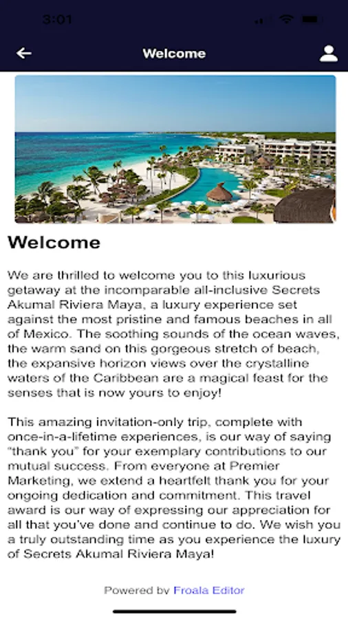 Welcome to the Premier Producers Convention event app! This app will be your information guide during the trip! We look forward to seeing you at Secrets Akumal Riviera Maya!