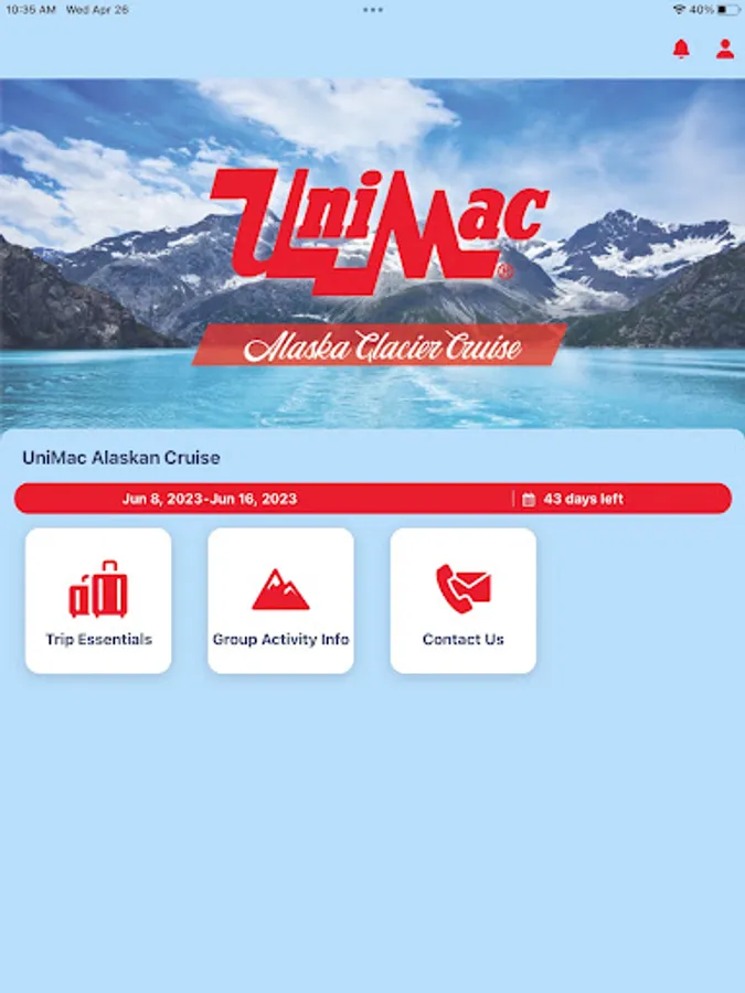 Welcome to the UniMac Alaskan Cruise Incentive EventAPP! This app will be your tool for up-to-date information, agendas, communications and much more!