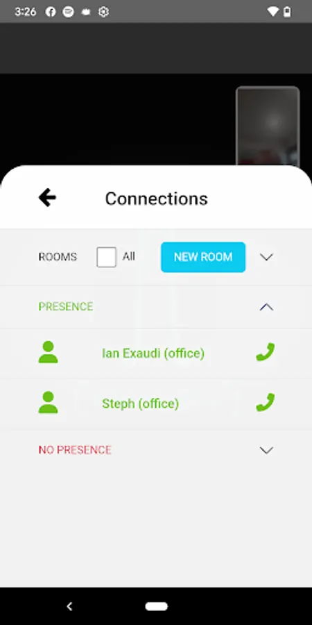 From there, you can access the services provided by your employer, such as 1:1 colleague connections, unlimited video duration, Home/Office device pairs, Status/Availability Sharing and Privacy Modes (on/off/auto).