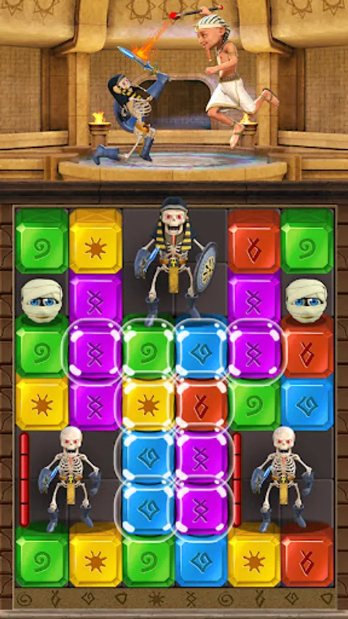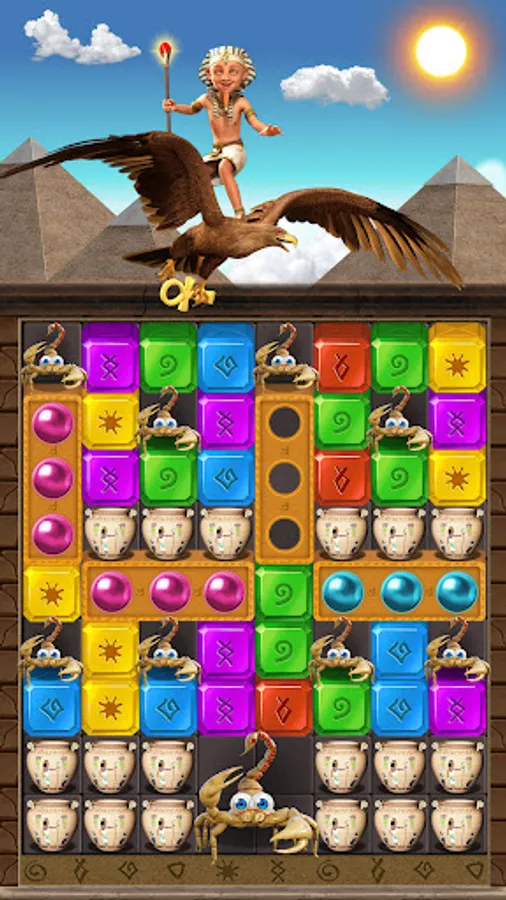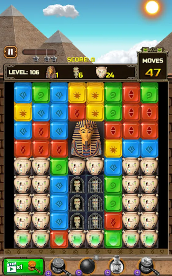 Your mission is finding myth jewel cubes, and fighting against strong monsters to protect precious Egypt treasure. All you have to do is tap to match the shining diamonds on the screen. Easy to start, but later levels will challenge you with various missions and obstacles! Are you dare to take the adventure and find mythical treasure in ancient Egypt Pyramid ?