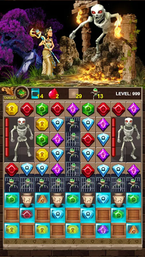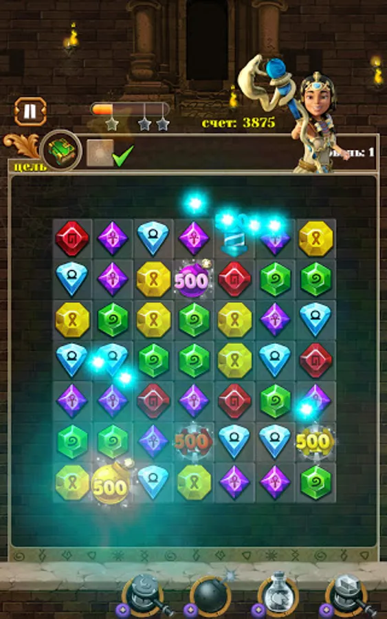 This classic game is a match 3 puzzle with jewels that takes you back to the ancient Egyptian civilization. Lost treasures are hidden in the legendary temple and tombs - many jewels and diamonds. You have to find them and hunt for them. This free game has over 1000 levels, 25 missions. You don't have to go into the wild to play. You will be able to enjoy the game even without an Internet connection.
