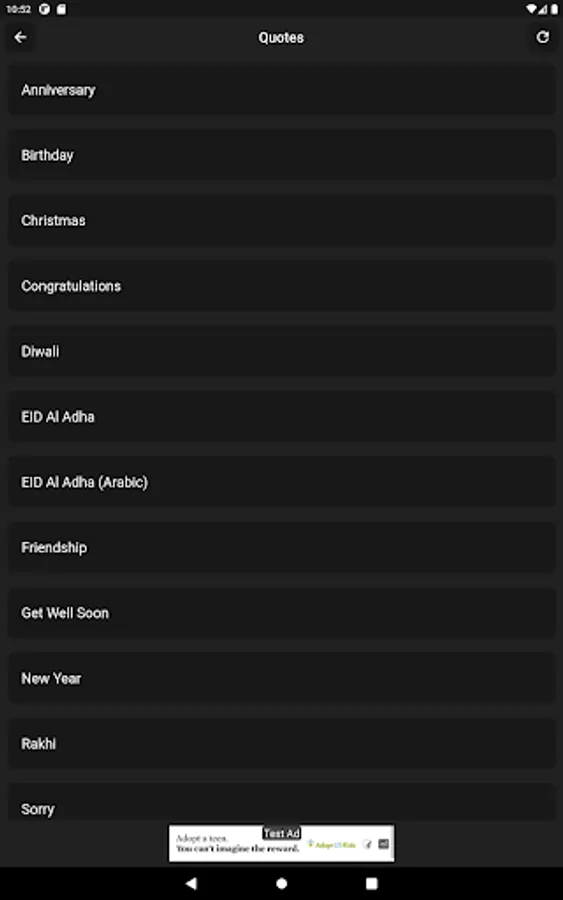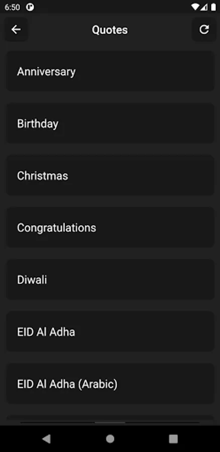 - Inspiring quotes for different situations such as Anniversary, Birthday, Eid, Friendship,