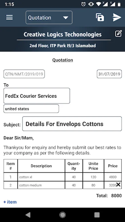 "Creative Quotation" helps you managing your business by providing you the facility to create digital Quotations/Invoices for your clients just within 2 clicks.
