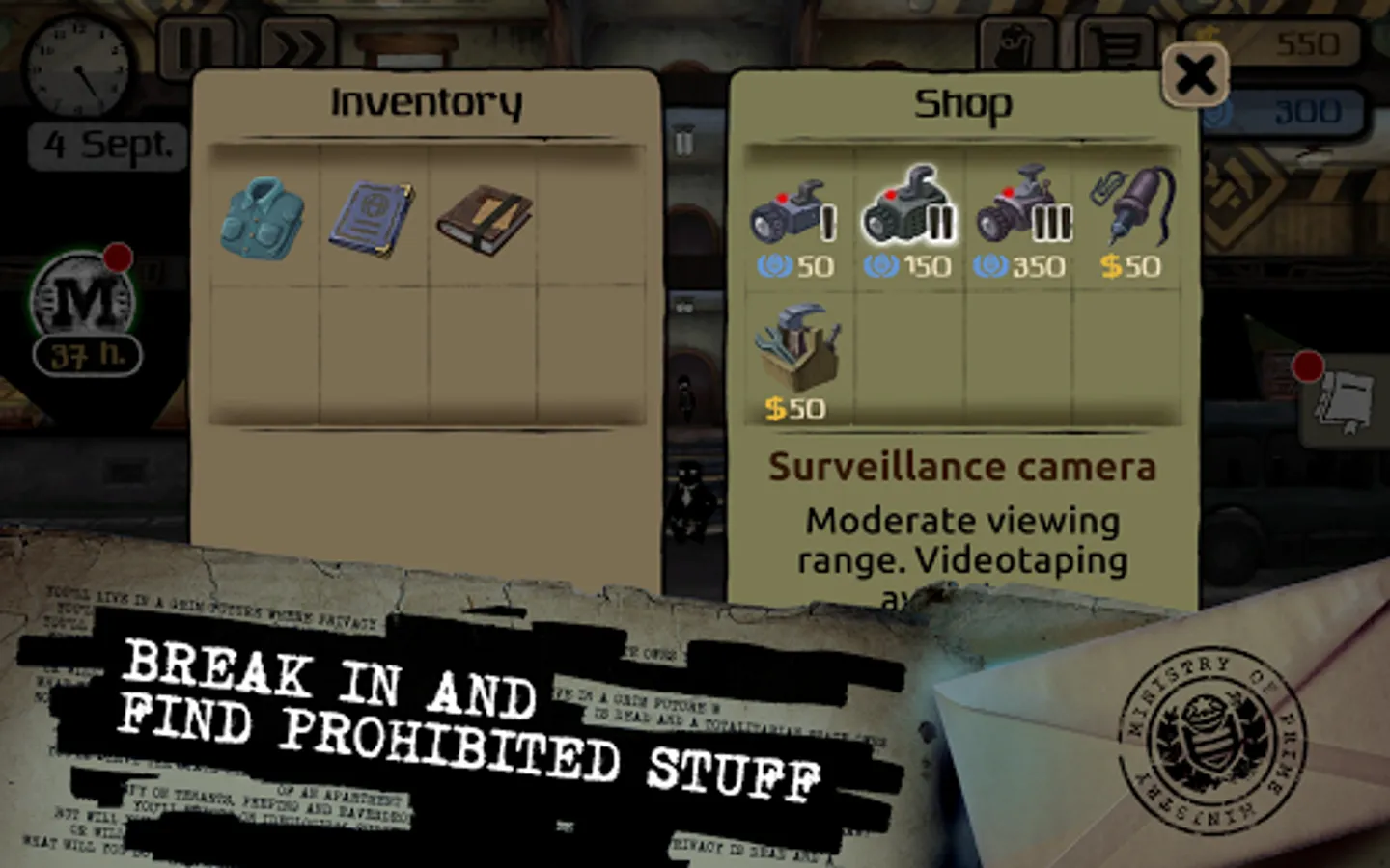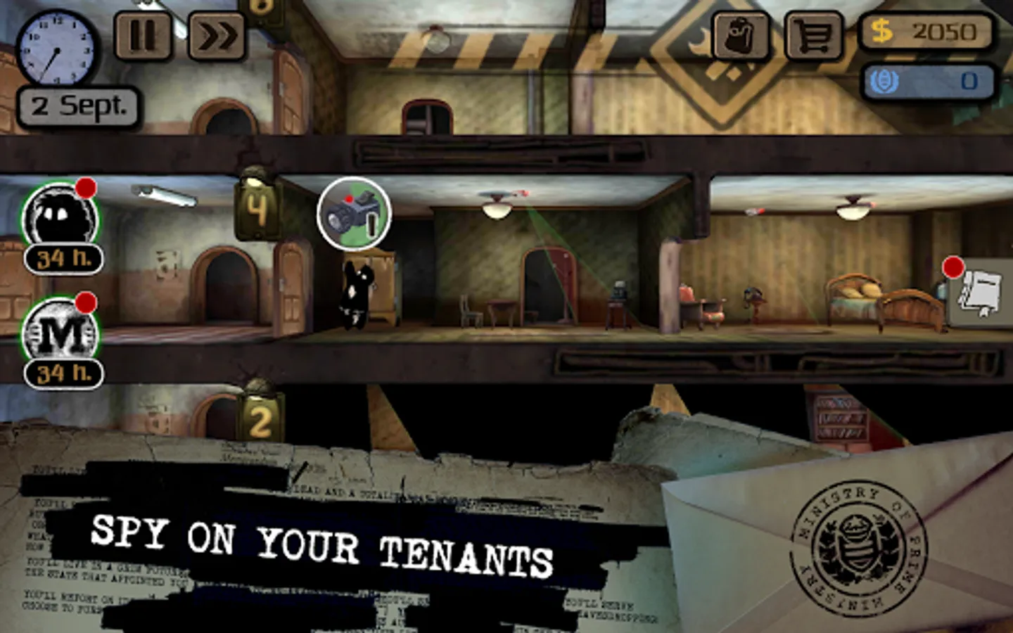 The State has appointed you to SPY ON YOUR TENANTS! Your primary task is to covertly watch your tenants and eavesdrop on their conversations. You must BUG their apartments while they're away, SEARCH their belongings for whatever can threaten the authority of the State, and PROFILE them for your superiors. You must also REPORT anyone capable of violating the laws or plotting subversive activities against the State to the authorities.