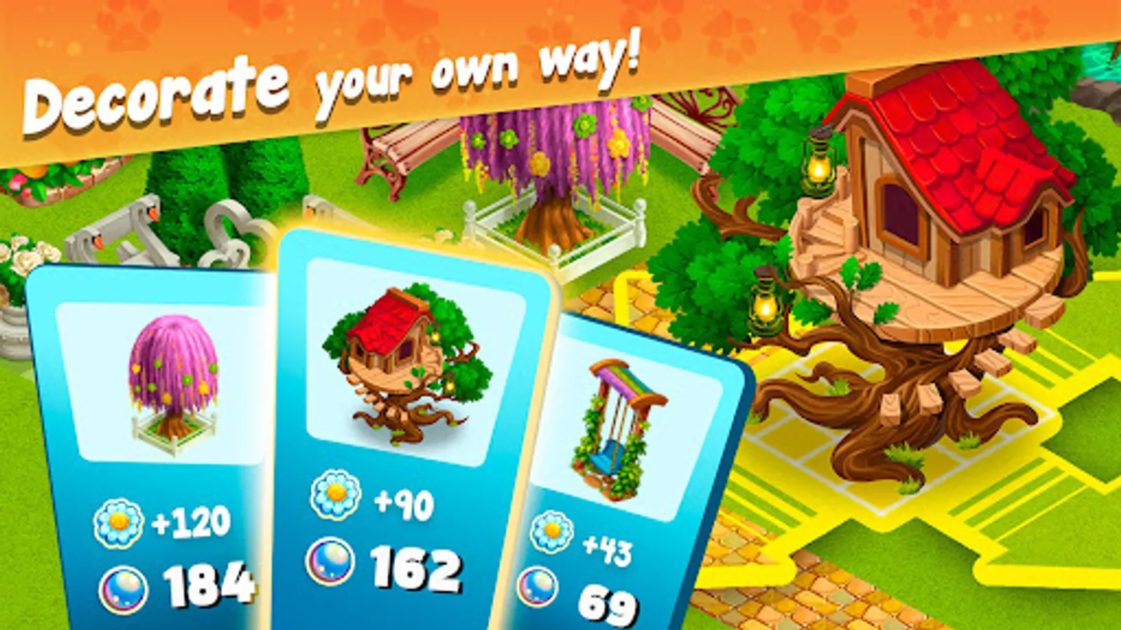 Craft new species by merging animals in the magic laboratory. This unique breeding process will allow you to create rare and exotic fauna creatures. Think beyond the petting zoo and enter a magical pet world with dragons and griffins! Unlock more than 200 types of animal species and create new homes for them.