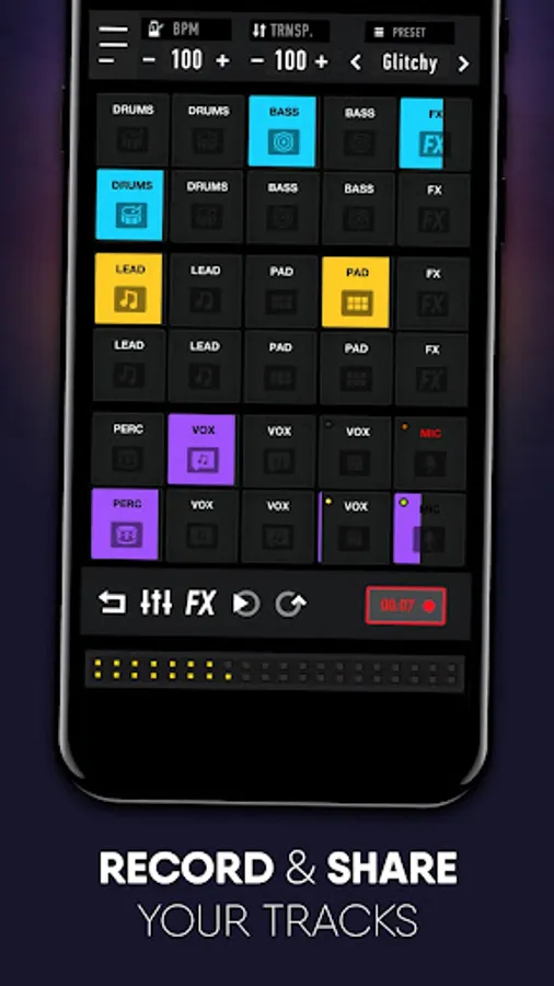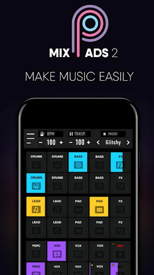 MIxpads 2 - Drum pads & dj music mixer for making remixes; You can record tracks, songs , create new music and easily make beats.