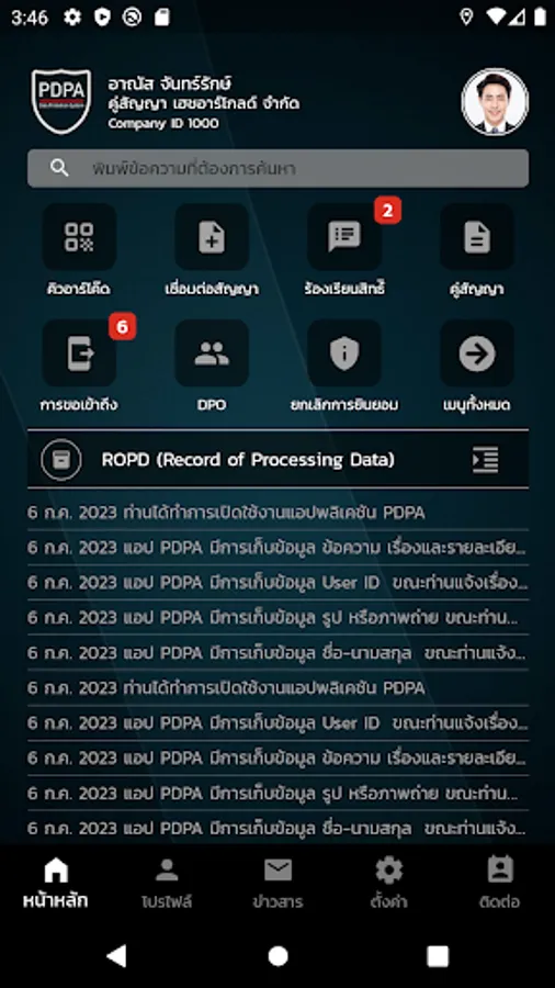 2) Privacy Policy / Privacy Notice The function of broadening personal information access policies through the App Bewcon PDPA system to reach employees, customers or corporate visitors. via mobile phone