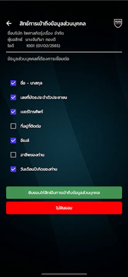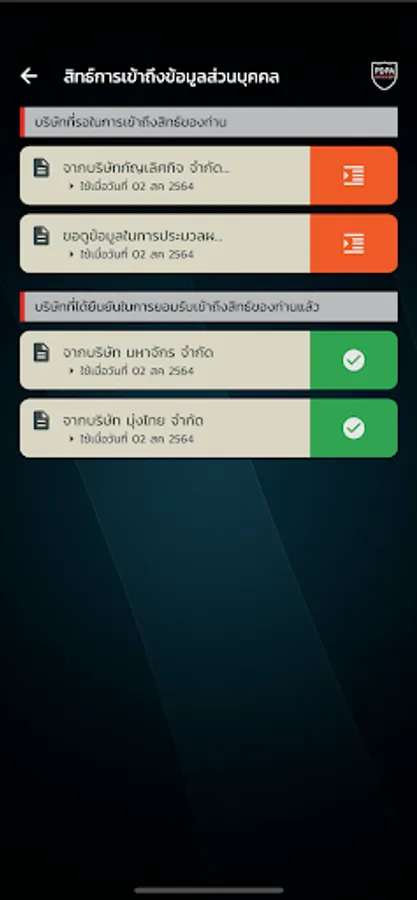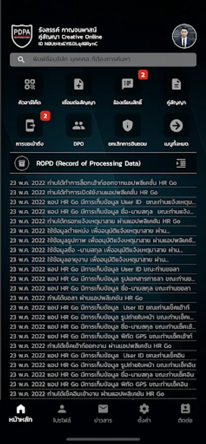 2) Privacy Policy / Privacy Notice The function of broadening the policy of accessing personal information through the App PDPA system to access employees, customers or corporate visitors. via mobile phone