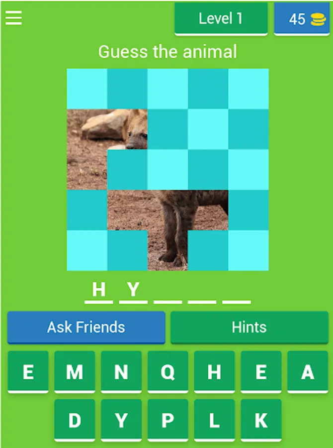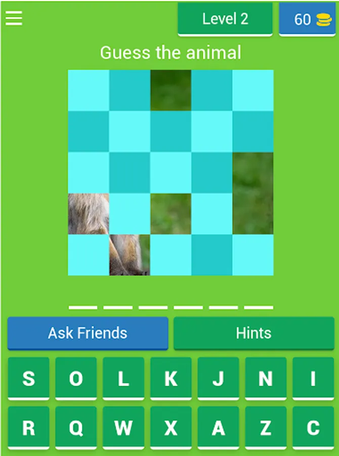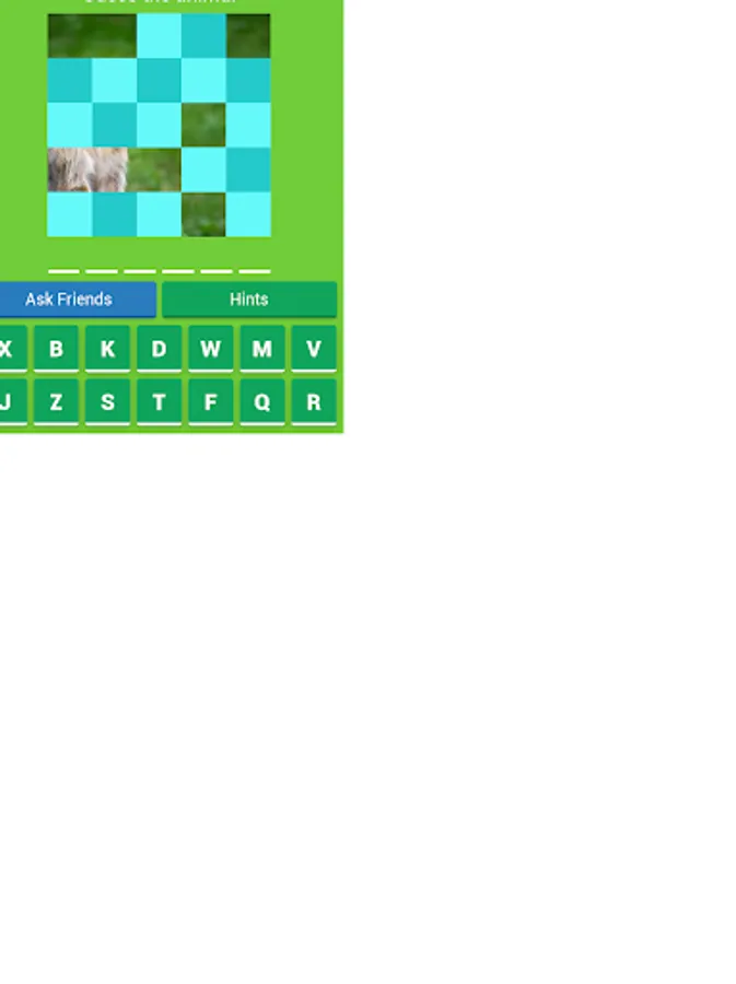 Discover the animals hidden under the tiles. How many tiles do you need to uncover to guess what animal it is? The fewer tiles you discover to guess what animal it is, the bigger the prize. Animal Quiz. Play Guess what animal it is quiz and have fun.