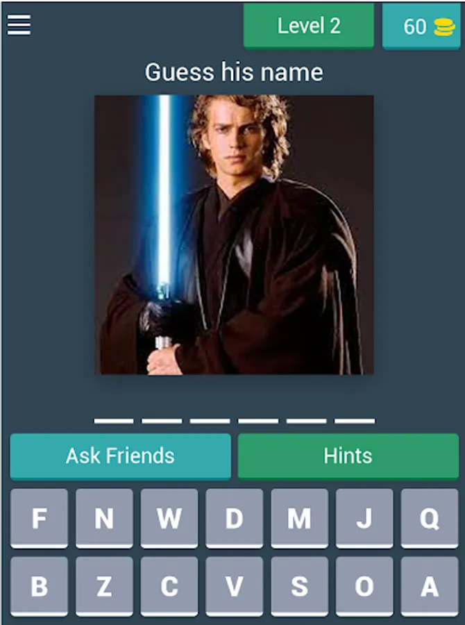 Test Your knowledge about S- Wars. This is a quiz game for S- Wars Fans. Do You know all character's names ? Do You know actors names ? You will find out in Quiz S- Wars word game.