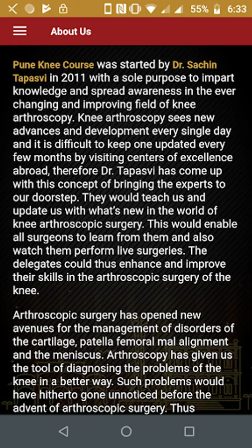 We are releasing the first version of the app. We will be updating it frequently to keep you posted about all the latest happenings of Pune Knee Course.