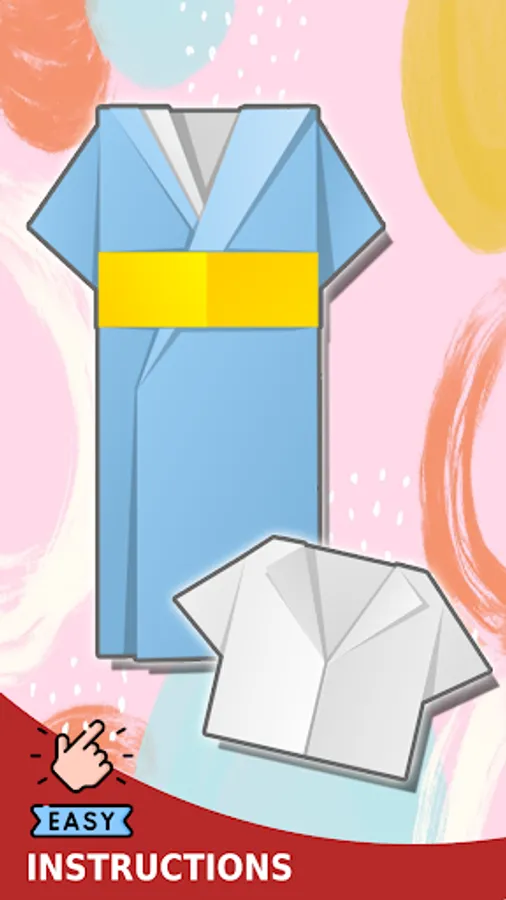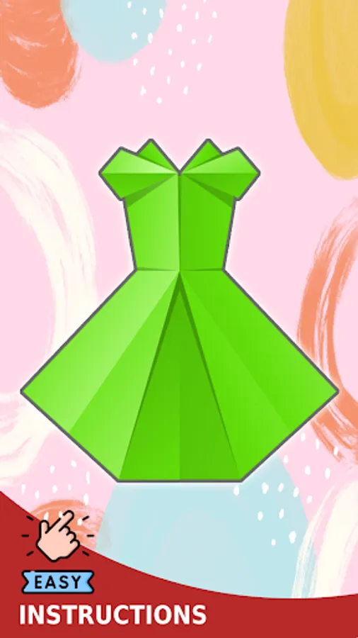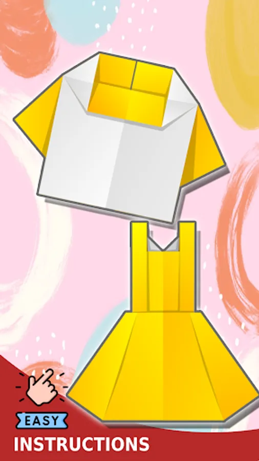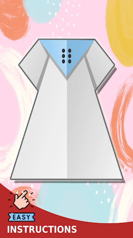 Let me share a tip: to make origami clothes from this app, you need colored tissue paper. However, you can use plain white thin paper such as writing paper or office printer paper. The white paper can then be colored with paints or markers. Just imagine how fun and educational it will be! Try to make the folds on the paper as best and accurate as possible. You can use glue to fix the molds correctly. This will make your origami more enjoyable, and the decorative apparel crafts will be stronger and more beautiful. Be more careful and careful with the glue: wait until it dries well and hardens. Observe safety precautions.
