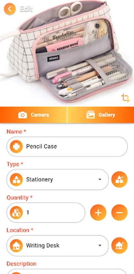 - Record basic info of the item, e.g. item name, type, location, quantity and description