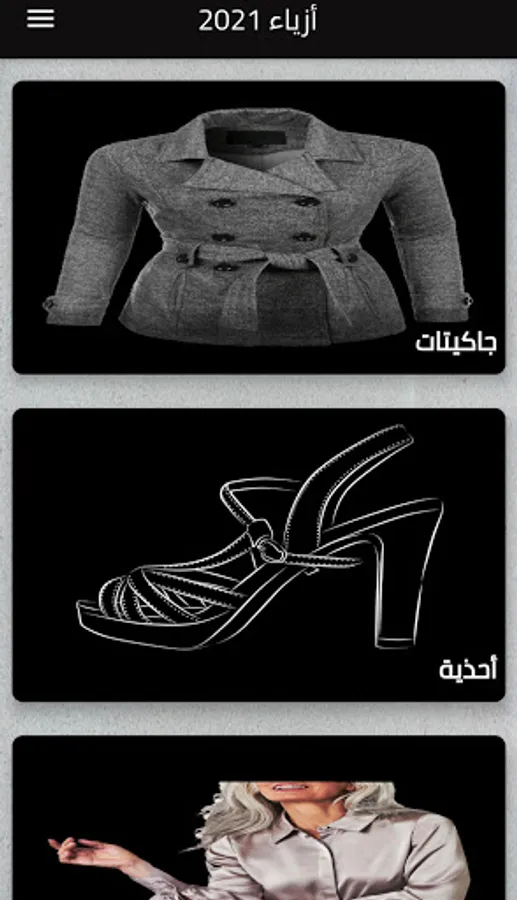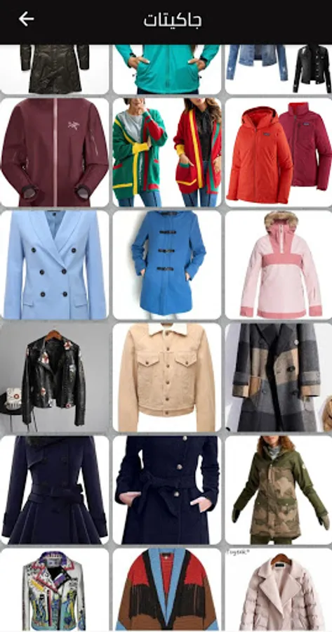 يوجد داخل التطبيق كل شيء يخص الموضة من احذية ,اكسسوارات وجاكيتات azya' banat - ازياء بنات