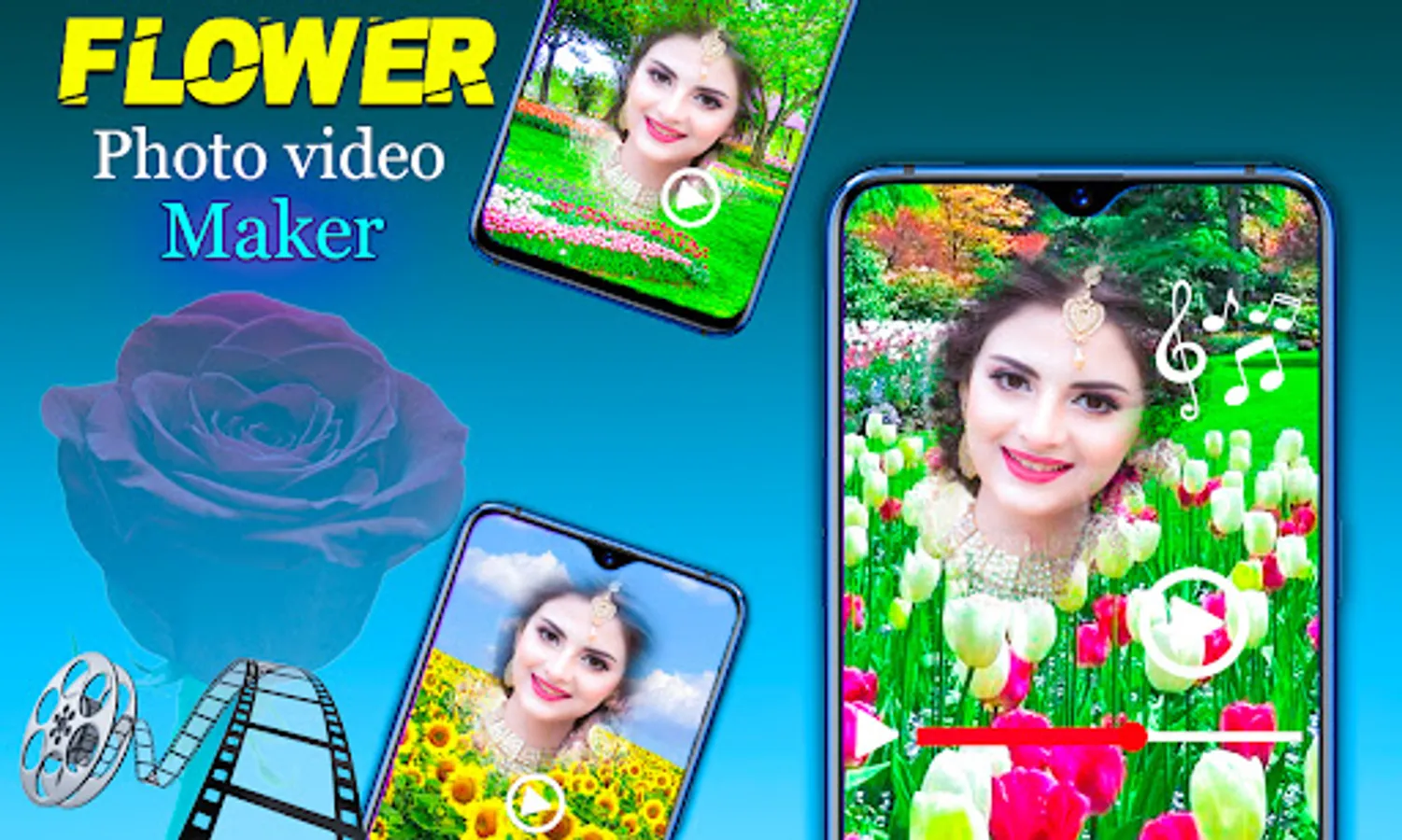 You can Create Your Flower Party Movie by Using Flower photo video maker app.