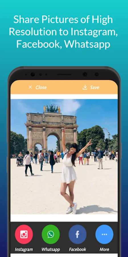 + Share pictures of high resolution to Instagram, Facebook, Whatsapp, etc.