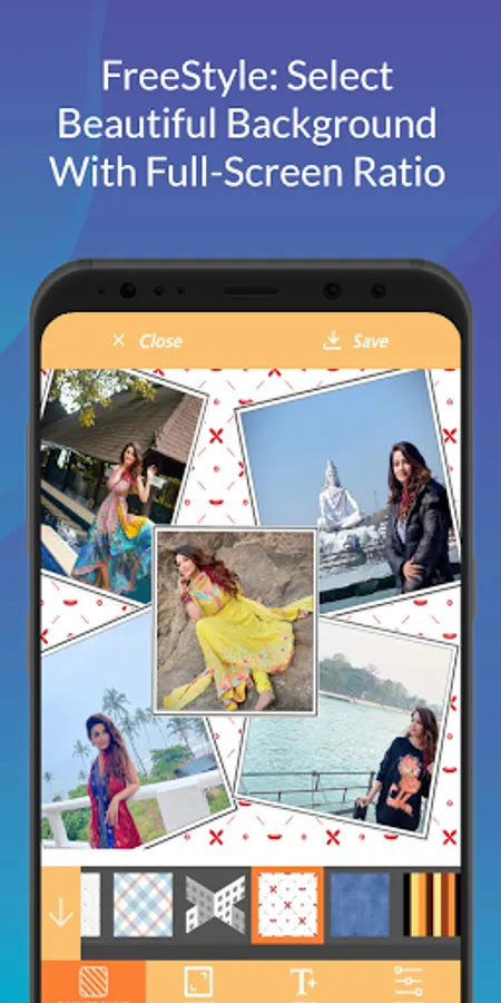 Create a photo collage with 100+ layouts instantly. Chose multiple photo frames, designed background, and also blur background to make a beautiful photo collage.