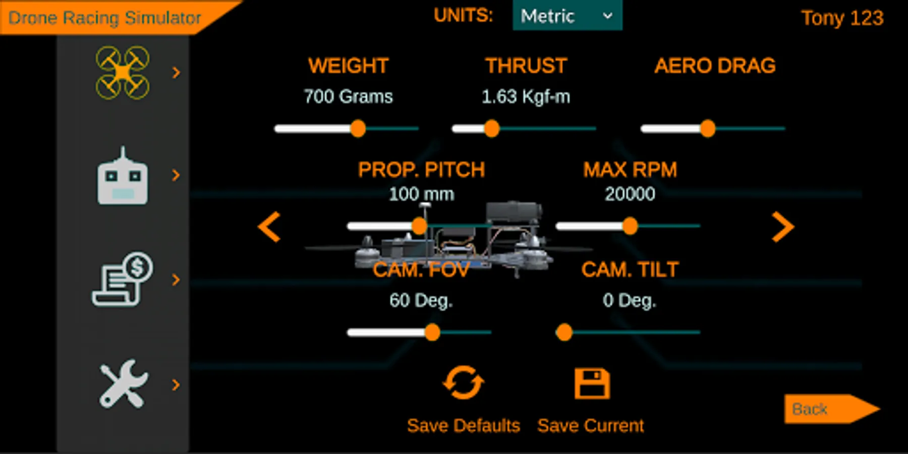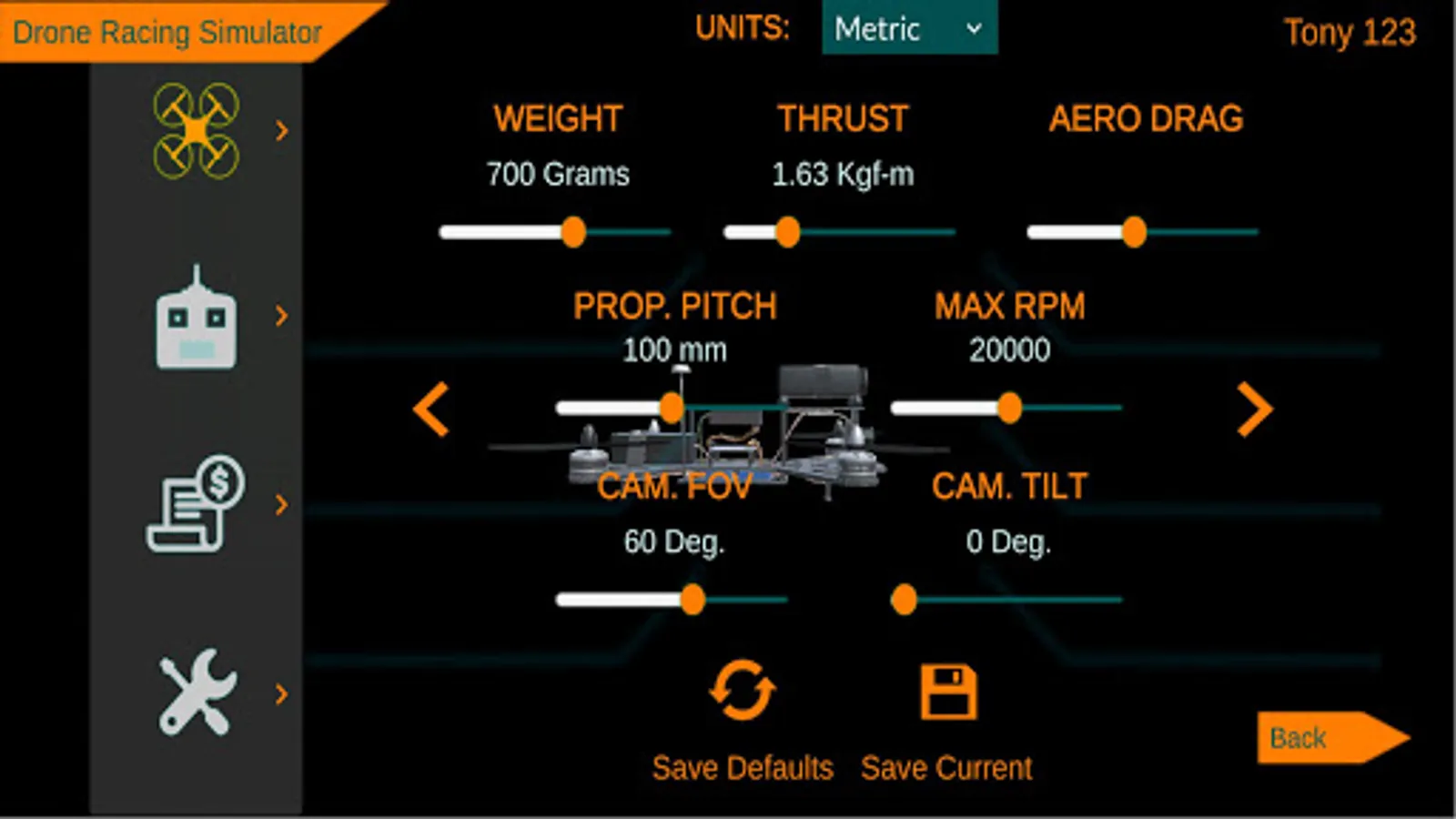 - Customizable Drone Weight, Thrust, Drag etc...