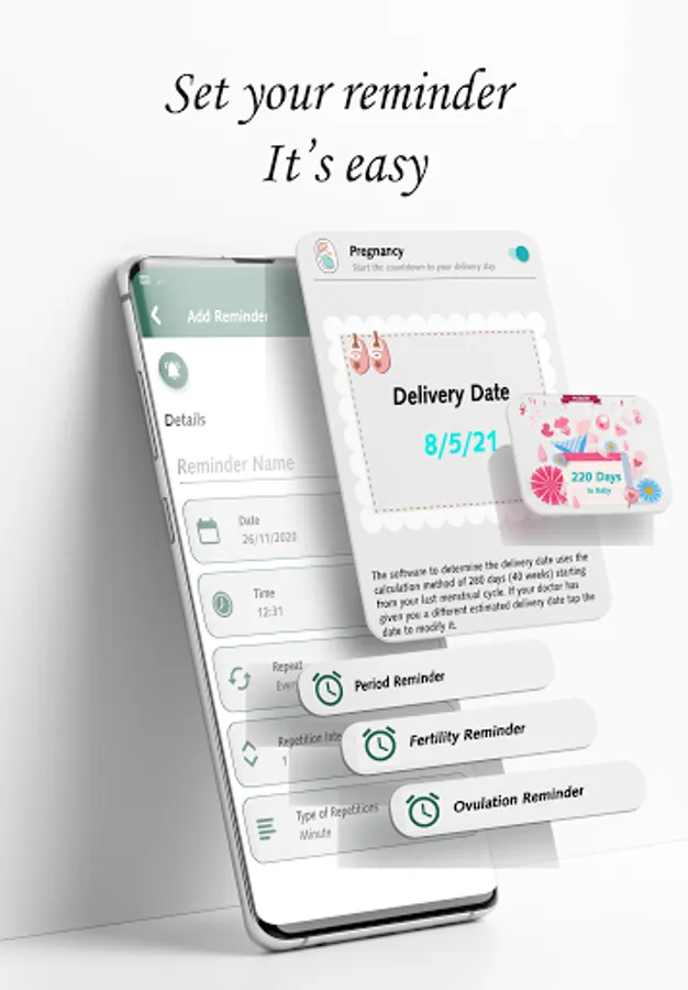- Schedule reminders and get notifications of your period, ovulation, and fertility