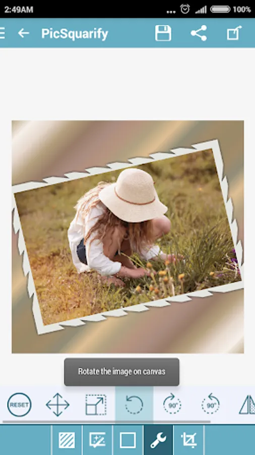 Transform and Edit : Crop, move, resize, rotate, flip the picture inside your square canvas.