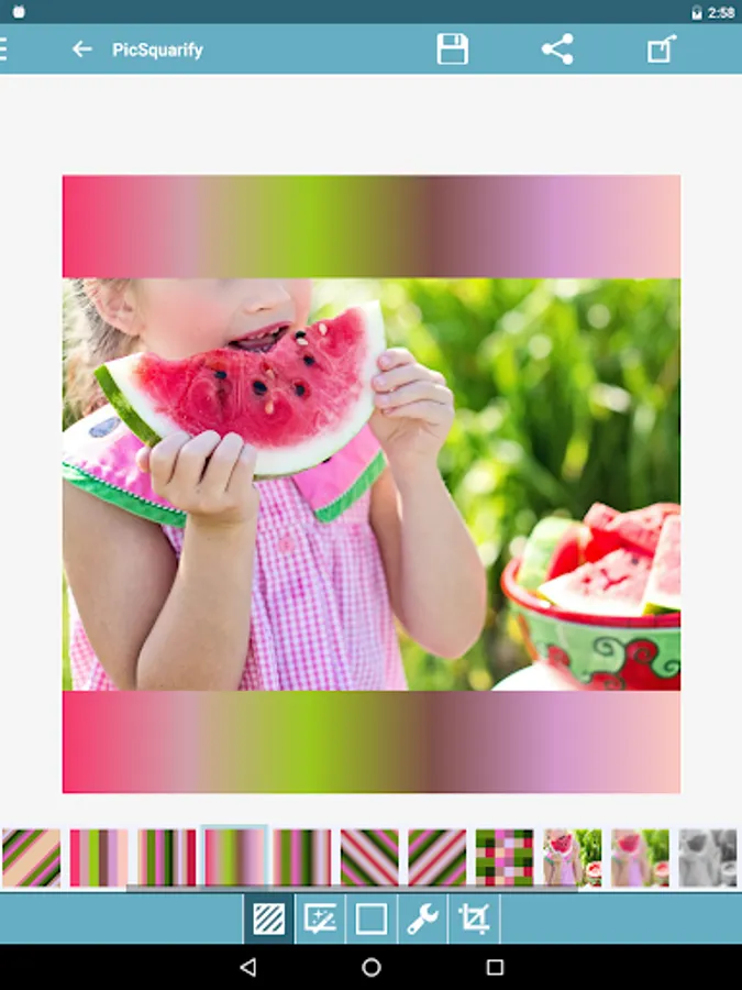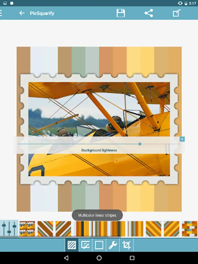 Background effects : Multicolor patterns with dynamic colors extracted from image so as to blend beautifully with the original picture for square background - custom colors- adjust background lightness