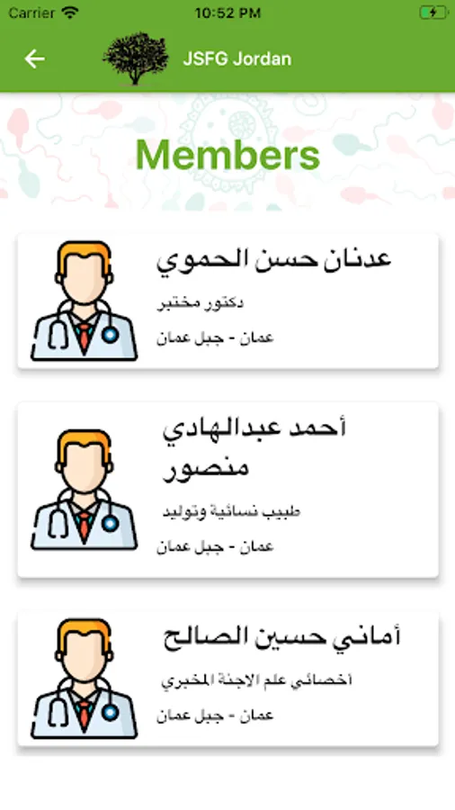 An app for The Jordanian Society For Fertility And Genetics that helps doctors to communicate with each other and help people to find IVF doctors around jordan