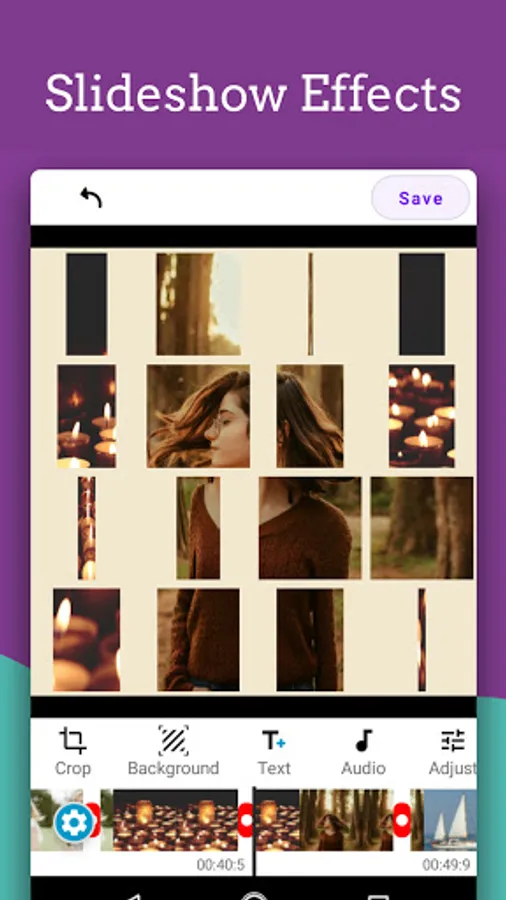 * Photo video maker with music, text on photos, 40+ editable transitions & effects - Slideshows.