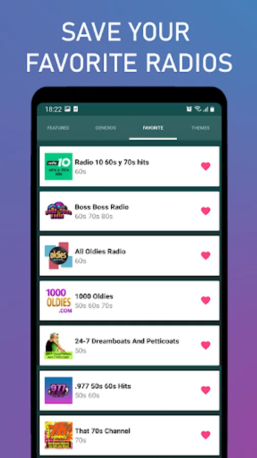 Listen to over 1000 radios for free with La Radio Oldies Music, here are some genres: