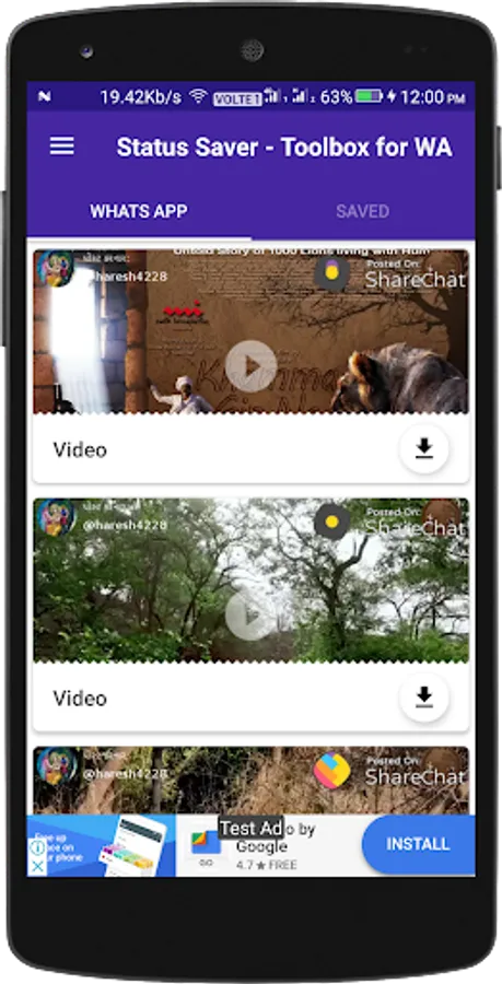 For browsing or Sharing the status, go to "saved" tab in the app.