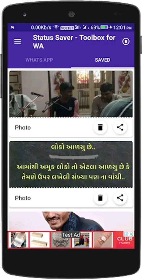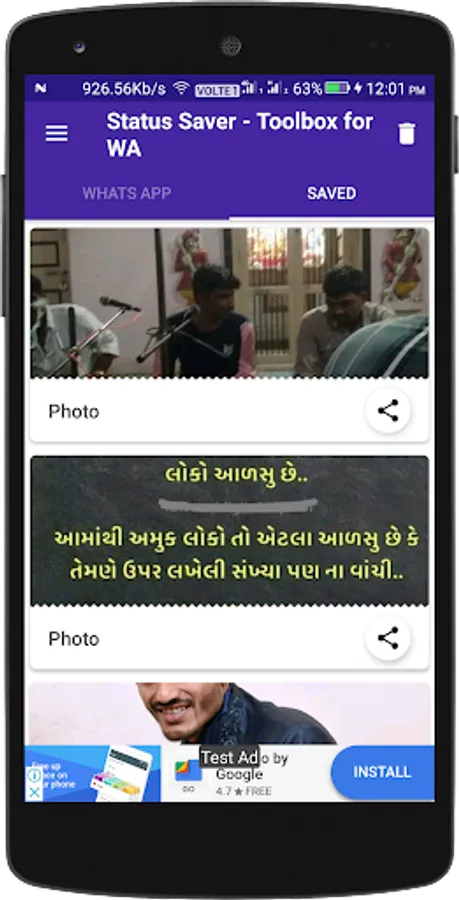 2. Then open this app, it will display that Photo, GIF or Video status / statuses