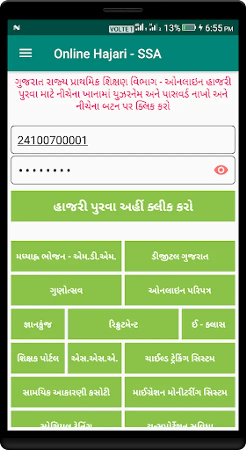 Online Hajari (SSA Aadhaar Enabled DISE) Application is Very Useful For Teacher, Principal (Acharya) and Students To Update Daily Attendance of Students.