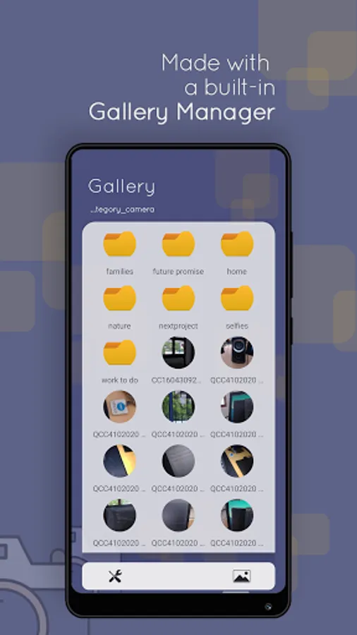 Clean Camera allows you to manage your photos right before taking photos. Select a folder direct from the camera view and settings page, feel free to create a custom folder for your photos.