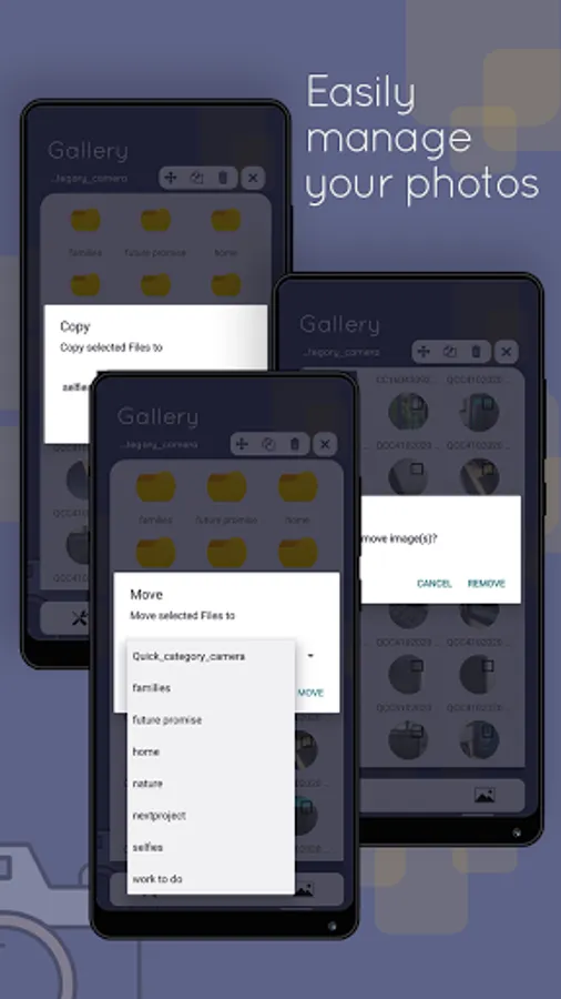 Easily manage folder. Remove, copy, and move your photos to another folder.