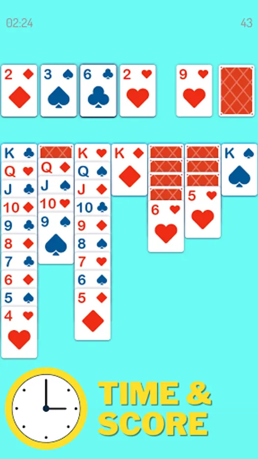 Tap or drag cards to arrange them in descending order with alternating colors. When you can, move cards up to the foundation to sort all of the suits from Ace to King. You can draw one card at a time for a more relaxing game, or draw three for a challenge to train your brain!