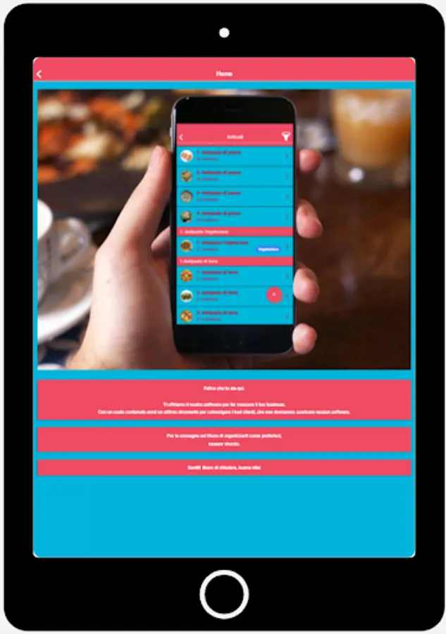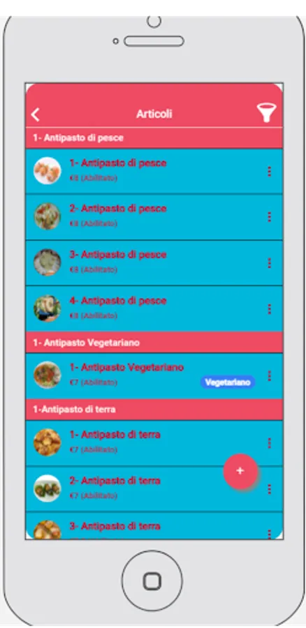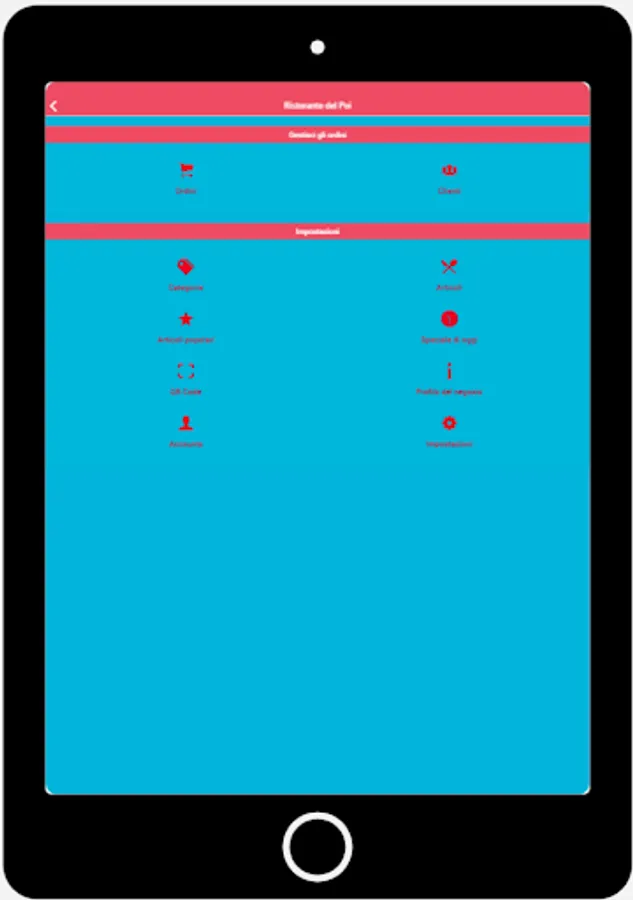 After downloading our application, and registering, the company can set the data of its business, enter infinite product categories, eg. (Appetizers, first courses, main courses, etc.) and the products it sells, all simple and intuitive. Even from Smartphone.
