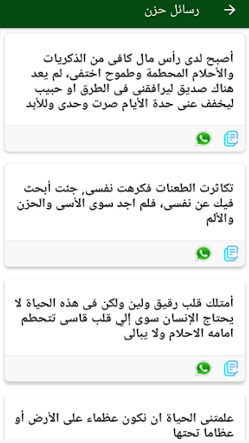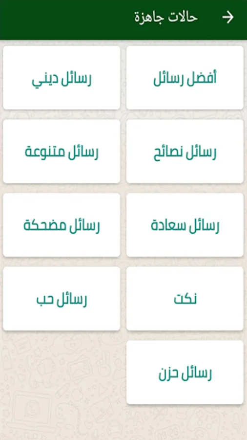 8 - The wonderful ready-made statuses feature that contains many sections for written cases and each section contains hundreds of messages such as the sad messages section, the love letters section, the jokes section, funny messages, happiness messages, religious messages, religious prayers messages and various messages