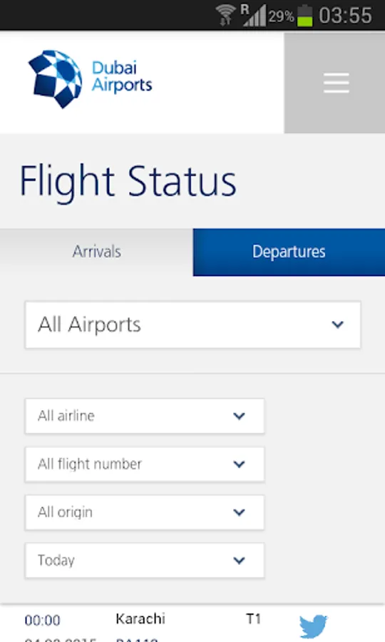A simple app that lets you follow the Dubai International Airport of Dubai flight schedule status on Real time.