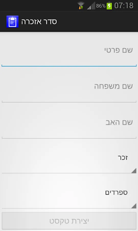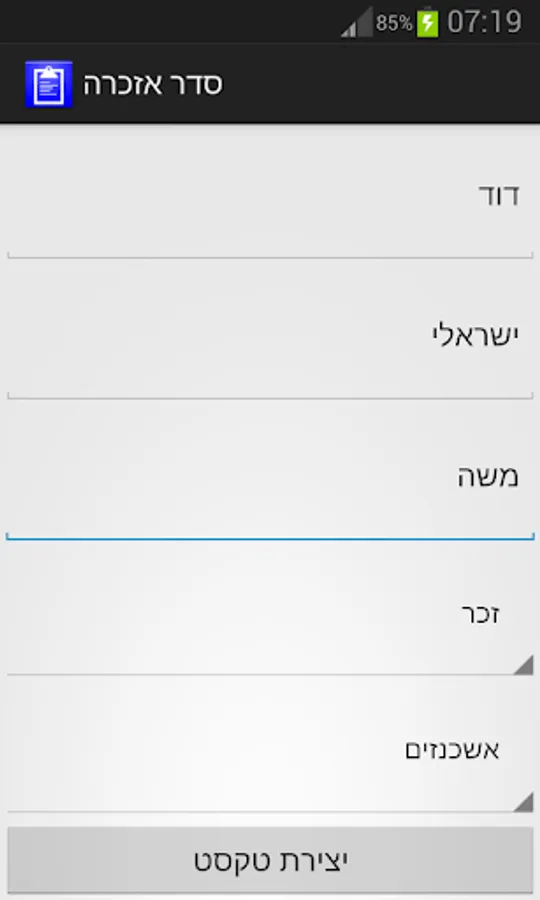 By entering the first name, last name, father's name and selecting male/female, and version (Sepharadim/Ashkenazi) of our beloved one, you will get the entire prayer need to be told.