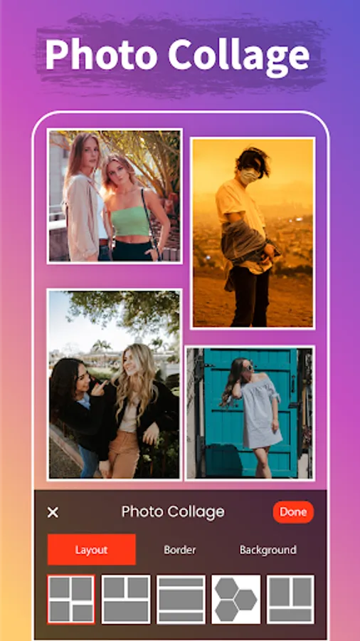 •Gird photo collage maker, enhance photo editor, photo frame with effects, layout