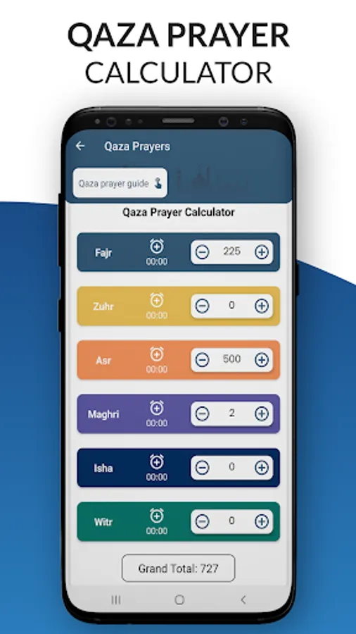 > Shows Muslim Prayer Times: Fajr, Dhuhr, Asr, Maghrib, and Isha.