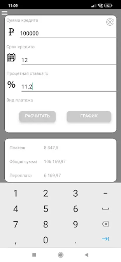 Loan pre-calculation app that will show overpayment and loan payment. A simple app for quick loan calculation. In this application you can quickly and easily calculate your credit.
