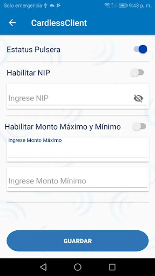 Mobile solution for CARDLESS bracelet holders, through which they can: