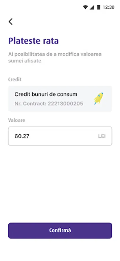 For example, for a loan of 50,000 lei repaid in 59 months, the annual (fixed) interest rate of 30%, the monthly rate is 1,649.11 lei and the effective annual interest (APR) is 35.32%.