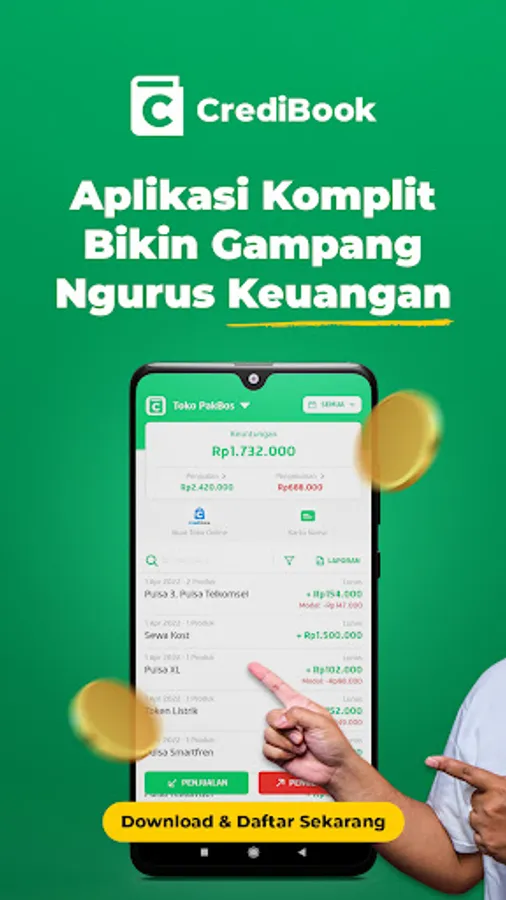 Jadi, Bos bisa langsung download dan akan lebih nyaman menggunakan CrediBook dalam aktivitas usaha sehari-hari. 👍