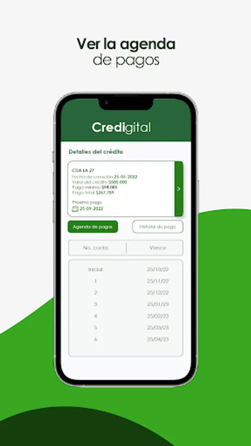 With the Credigital App you can access your credits quickly and see the status of each one.