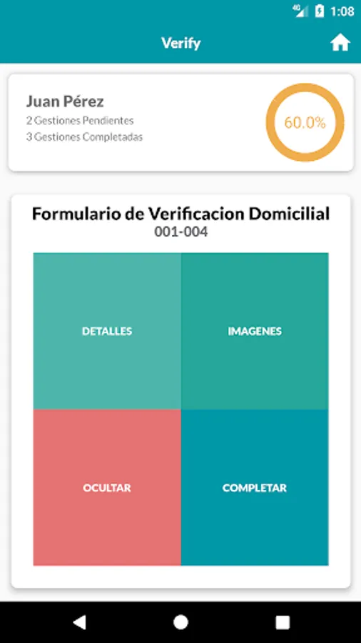 Verify capture the photo, exact location, date and time where management was performed, sending it securely to the administrator.