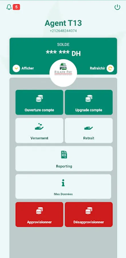 Through this application, the authorized agent can offer AL FILAHI CASH payment services to its customers instantly and securely; it can also follow its activity and the activity of its downline agents in real time and with ease.