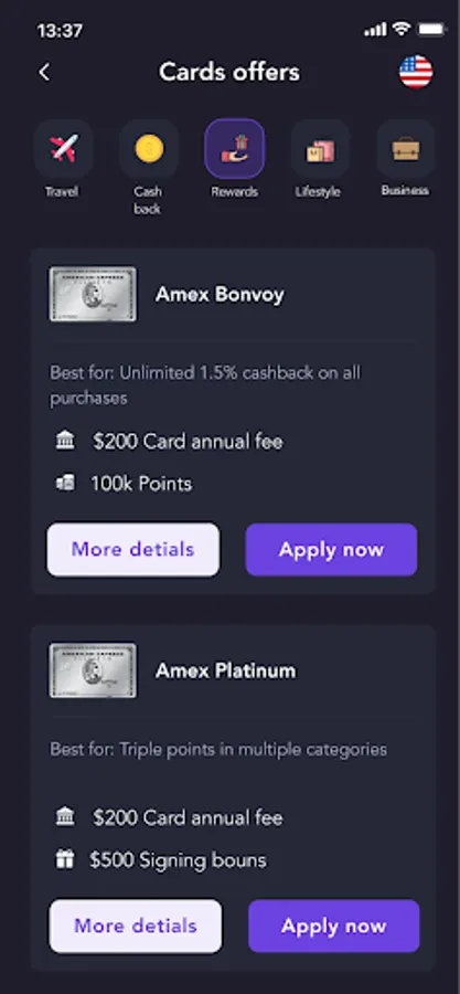 Credit Card app by little fox labs lets users search, review and apply for top credit cards across. you can filter it by various features of the cards before zeroing down the top card you like, i.e. best rewards card, best cashback card, best card for lounges, NO fee credit cards, and card with low/no FX rates etc.