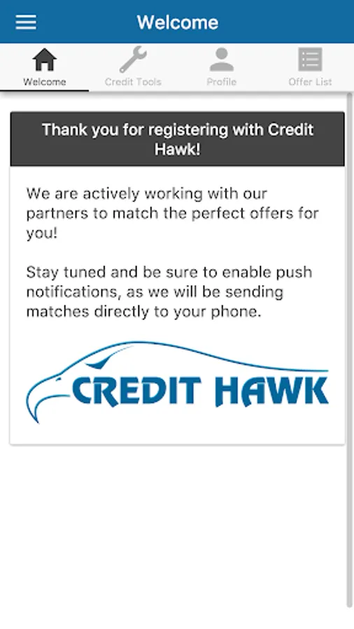 The Credit Hawk app is a user friendly portal to all things finance related! Use our debt calculator to understand when you can get out of debt and how much you can save. Get matched with today’s best loan and credit card companies using our profile matching system.