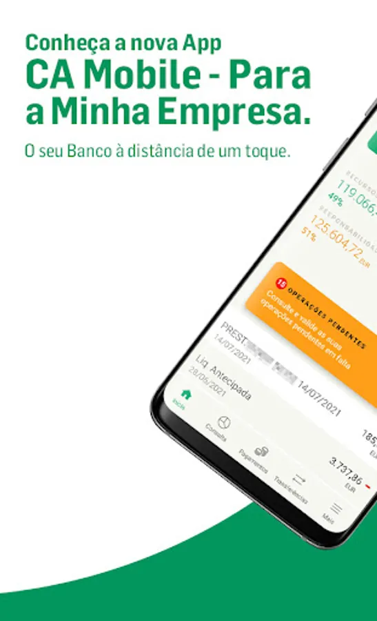 We created the new APP CA Mobile Empresas, to facilitate the management of your business. If you are a CA Online Customer and download the new APP from the store, sign up for the new CA Mobile Empresas now and easily and securely carry out consultations and financial operations.